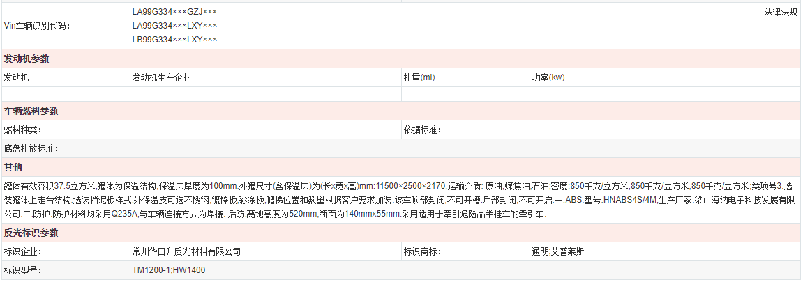 易燃液体罐式运输半挂车